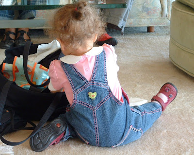 And the sweet baby girl sitting on the floor amusing herself by unpacking that carry-on.....